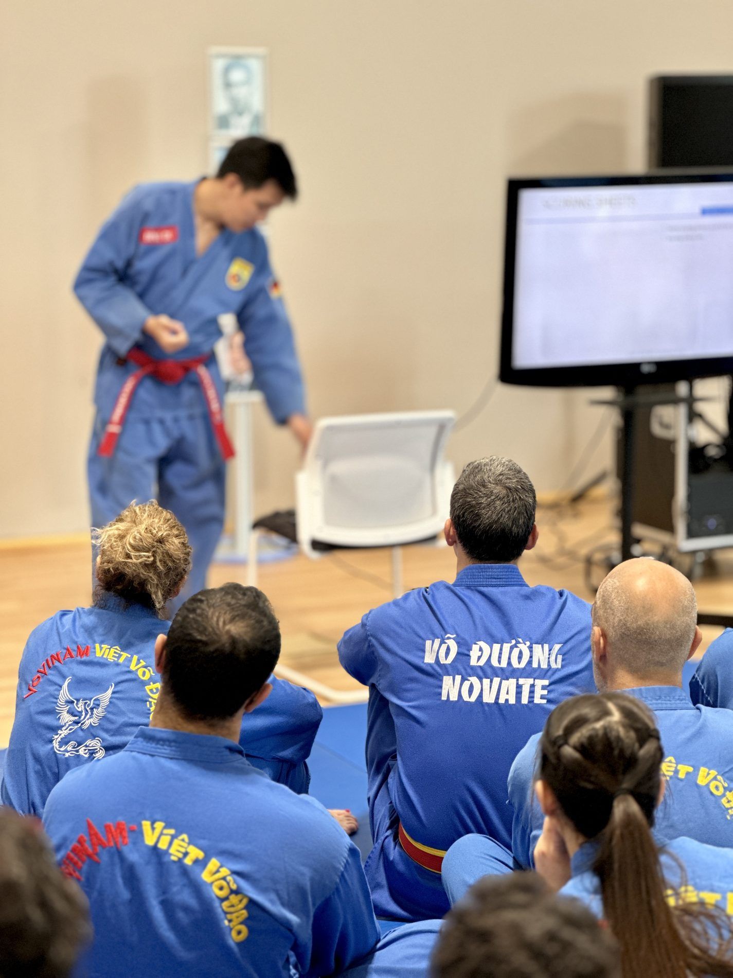 Al termine degli esami — brillantemente superati da tutti i candidati — si è tenuto un corso arbitrale sul di NGU MON QUYEN, tenuto dal Maestro Tran Dinh Du (responsabile arbitrale EVVF). Il seminario ha approfondito la metodologia per analizzare correttamente i Quyen, sia in chiave didattica che competitiva.