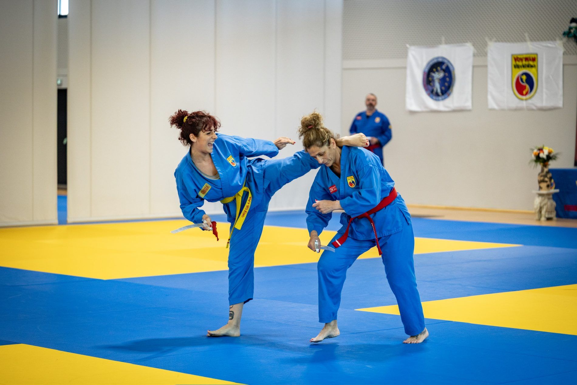 Nel pomeriggio, spazio alla formazione arbitrale per il combattimento, sempre a cura del Maestro Tran Dinh Du, seguita da una sessione tecnica divisa in due gruppi: