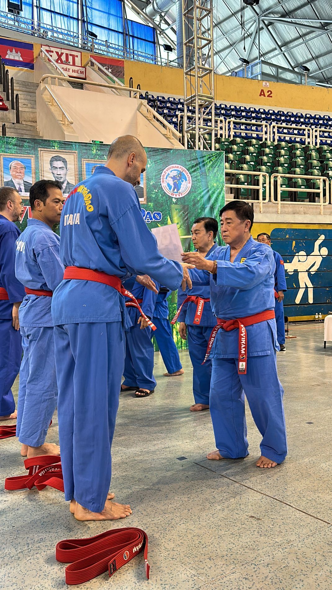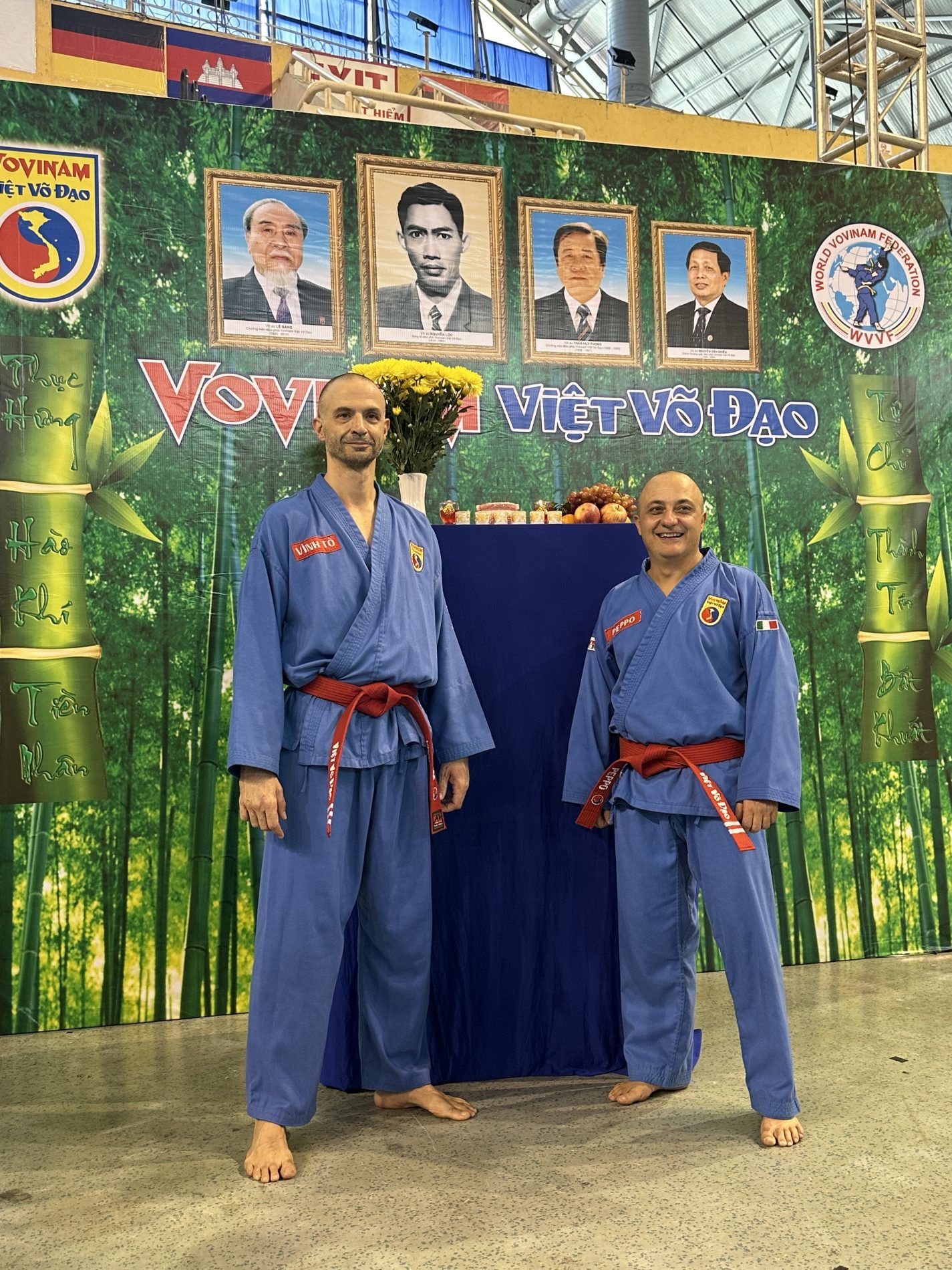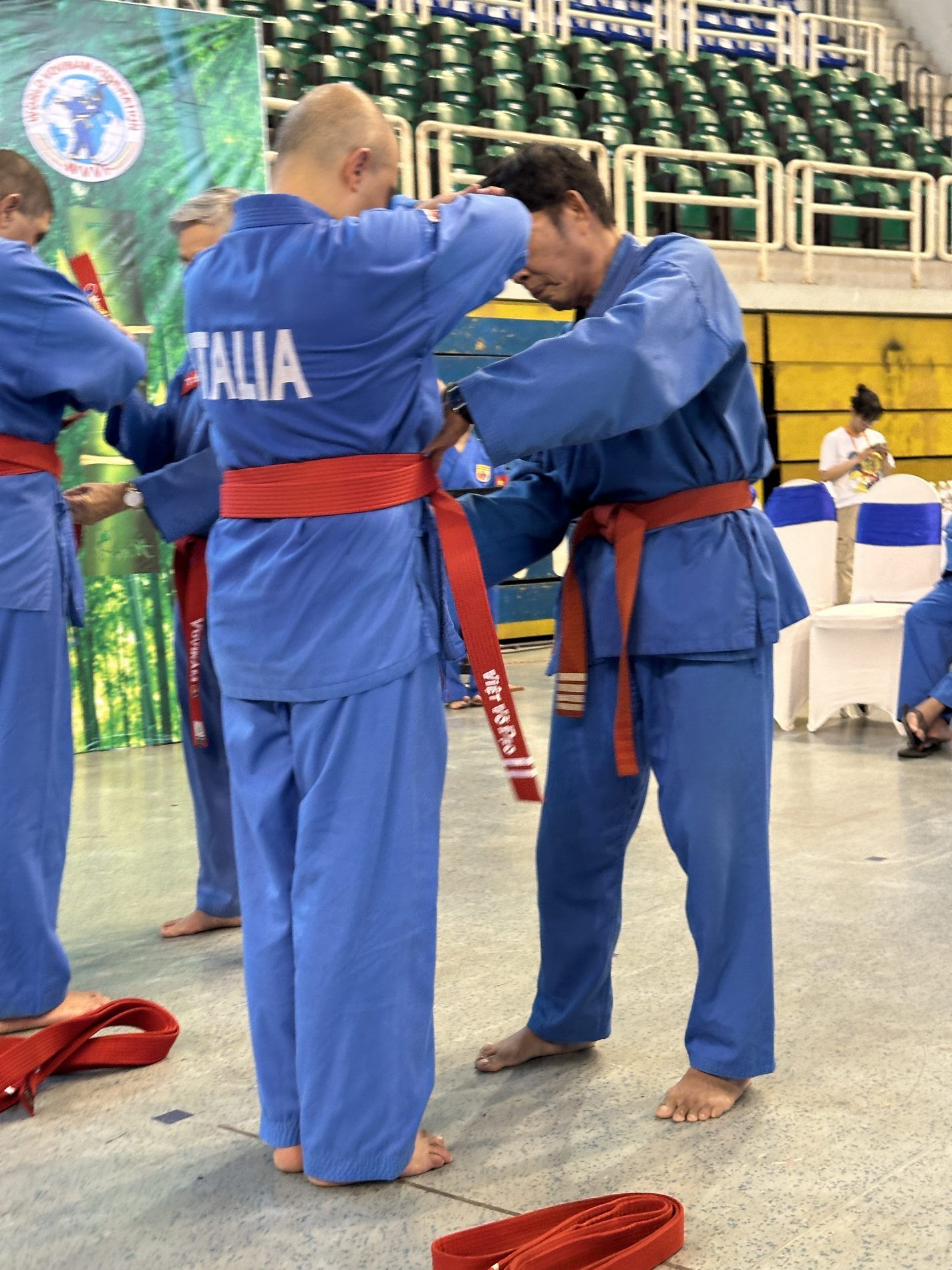 Come sermpre un cerimonia solenne, con il saluto ai maestri fondatori e che non ci sono più. Per i maestri italiani è importante il saluto e il ricordo del Gran Maestro Nguyen Van Chieu. Il Maestre è mancato nel 2020 e tanto ha supportato il nostro paese, un uomo fondamentale per noi e per il Vovinam. Purtroppo la sua mancanza si è percepita molto, anche perchè presente fino alle utlime sessioni di cintura rossa in cui hanno preso parte maestri italiani.