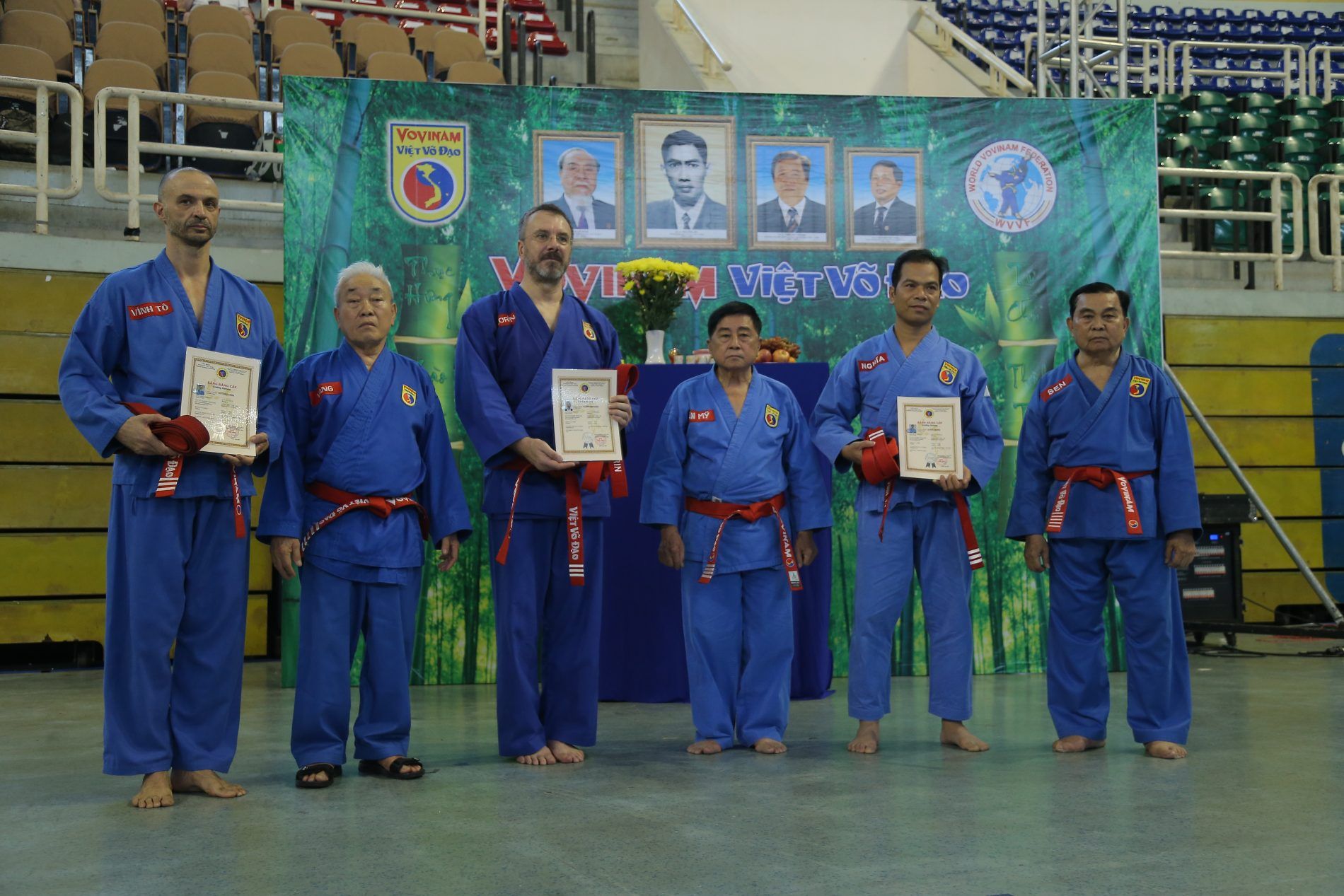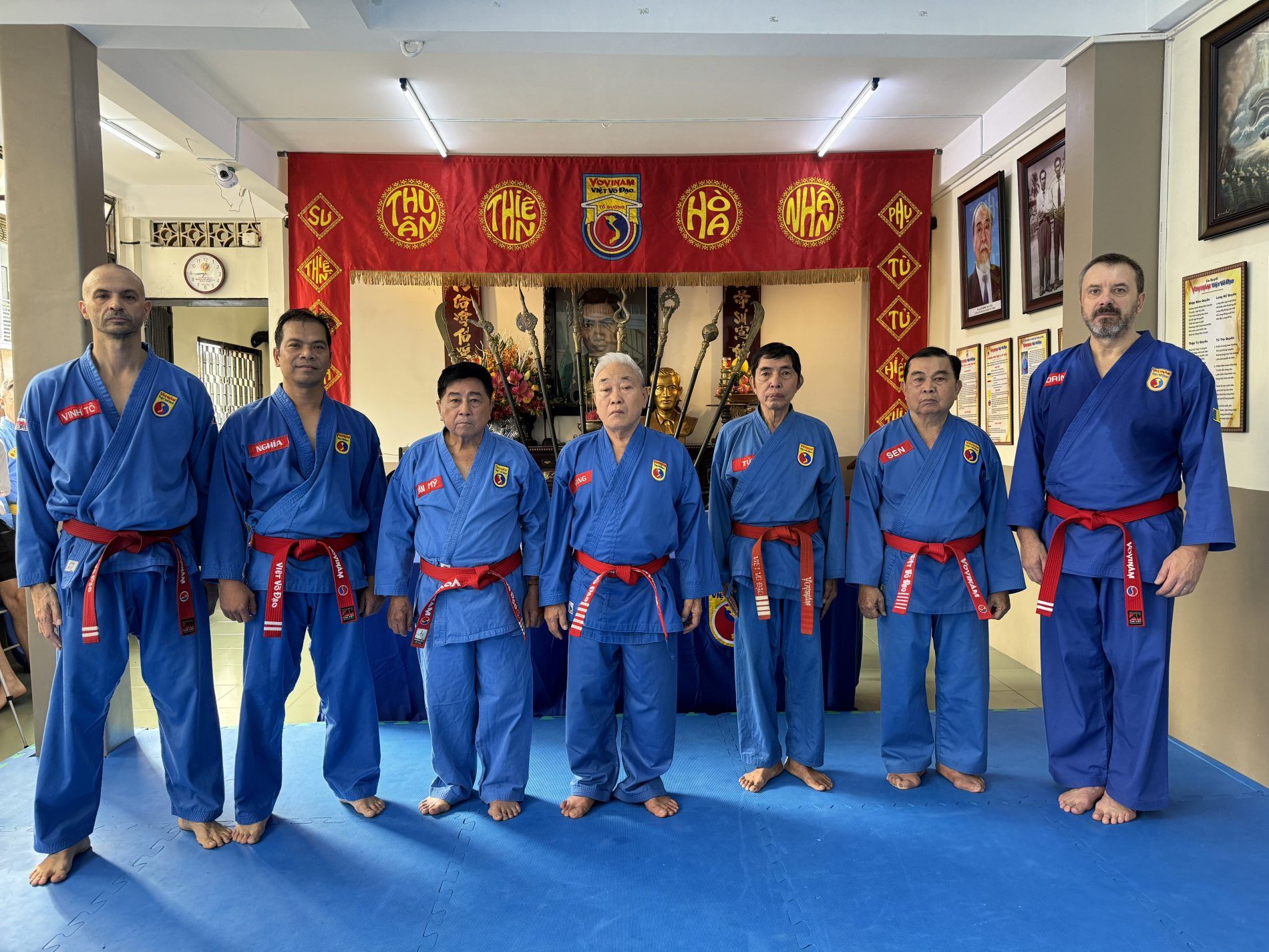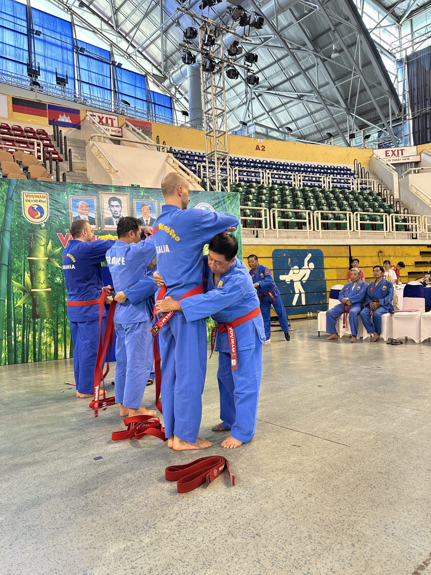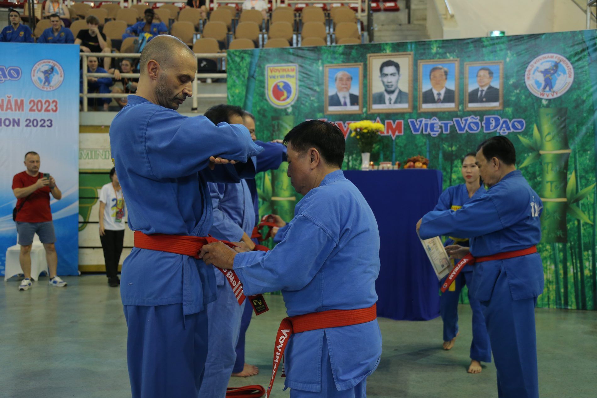 Come sermpre un cerimonia solenne, con il saluto ai maestri fondatori e che non ci sono più. Per i maestri italiani è importante il saluto e il ricordo del Gran Maestro Nguyen Van Chieu. Il Maestre è mancato nel 2020 e tanto ha supportato il nostro paese, un uomo fondamentale per noi e per il Vovinam. Purtroppo la sua mancanza si è percepita molto, anche perchè presente fino alle utlime sessioni di cintura rossa in cui hanno preso parte maestri italiani.