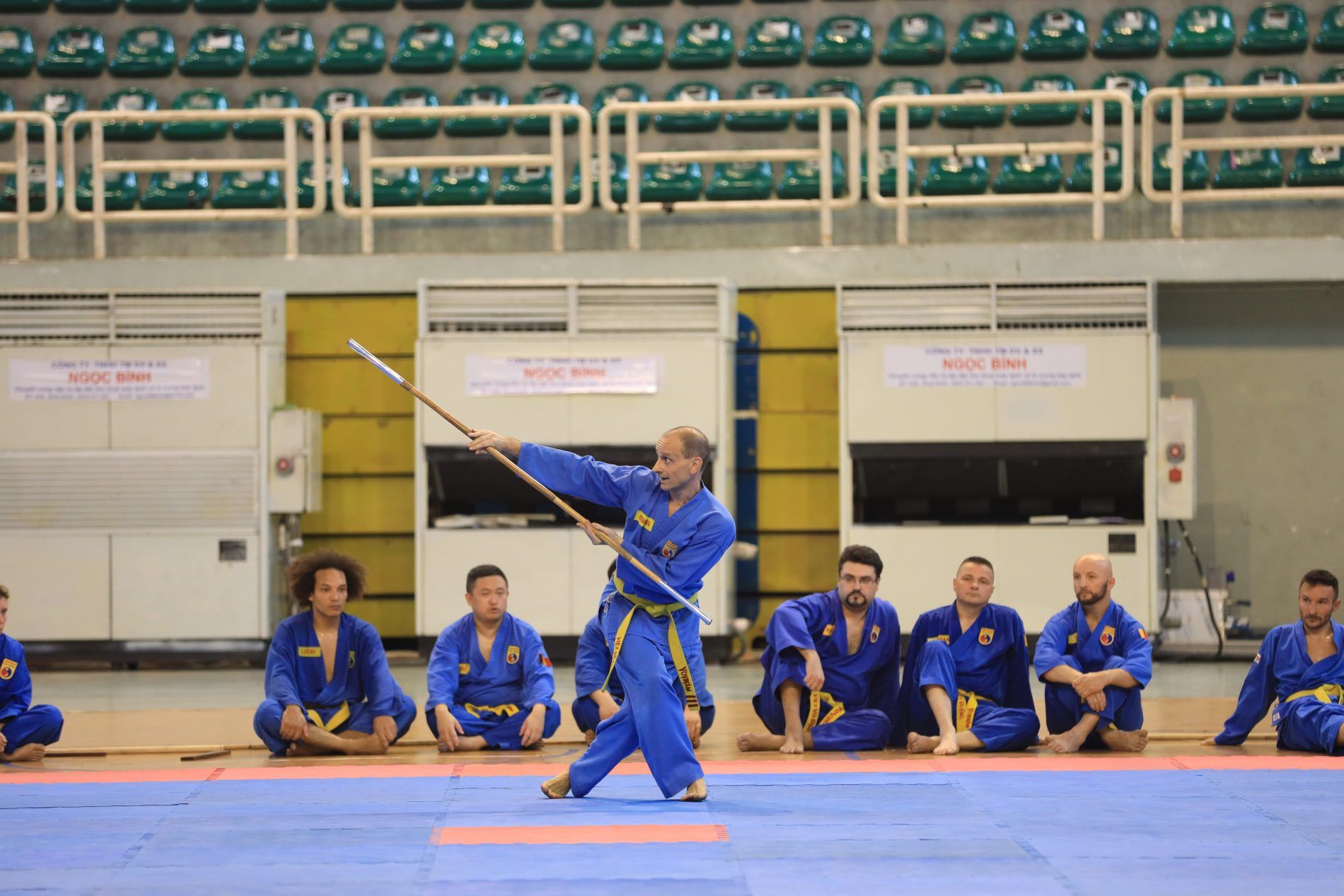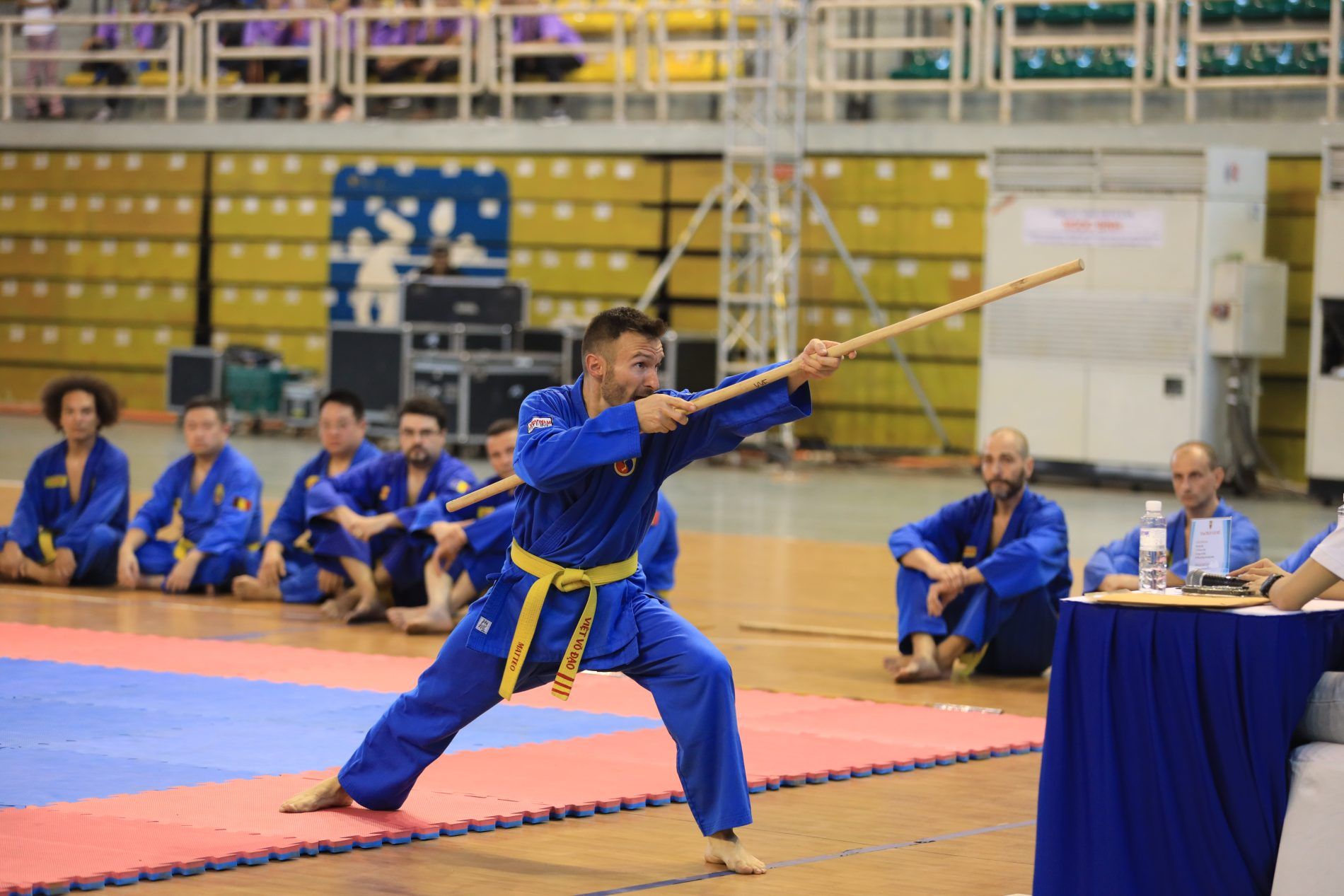 Il maestro Giuseppe è subito uno dei primi a presentare il Quyen, intanto sugli altri tatami i ragazzi per il 4° dang iniziavano con il quyen di bastone.